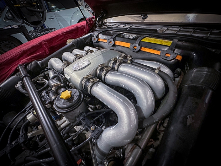 • Powder coated intake manifolds, plenum, upper OEM tie bar, rear exhaust heat shields & bumper grill. (in house).