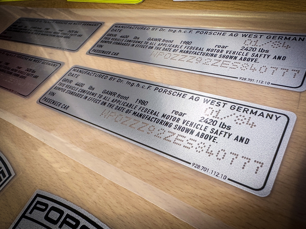• New OEM VIN decals in driver’s door jamb w/ tire inflation decals.