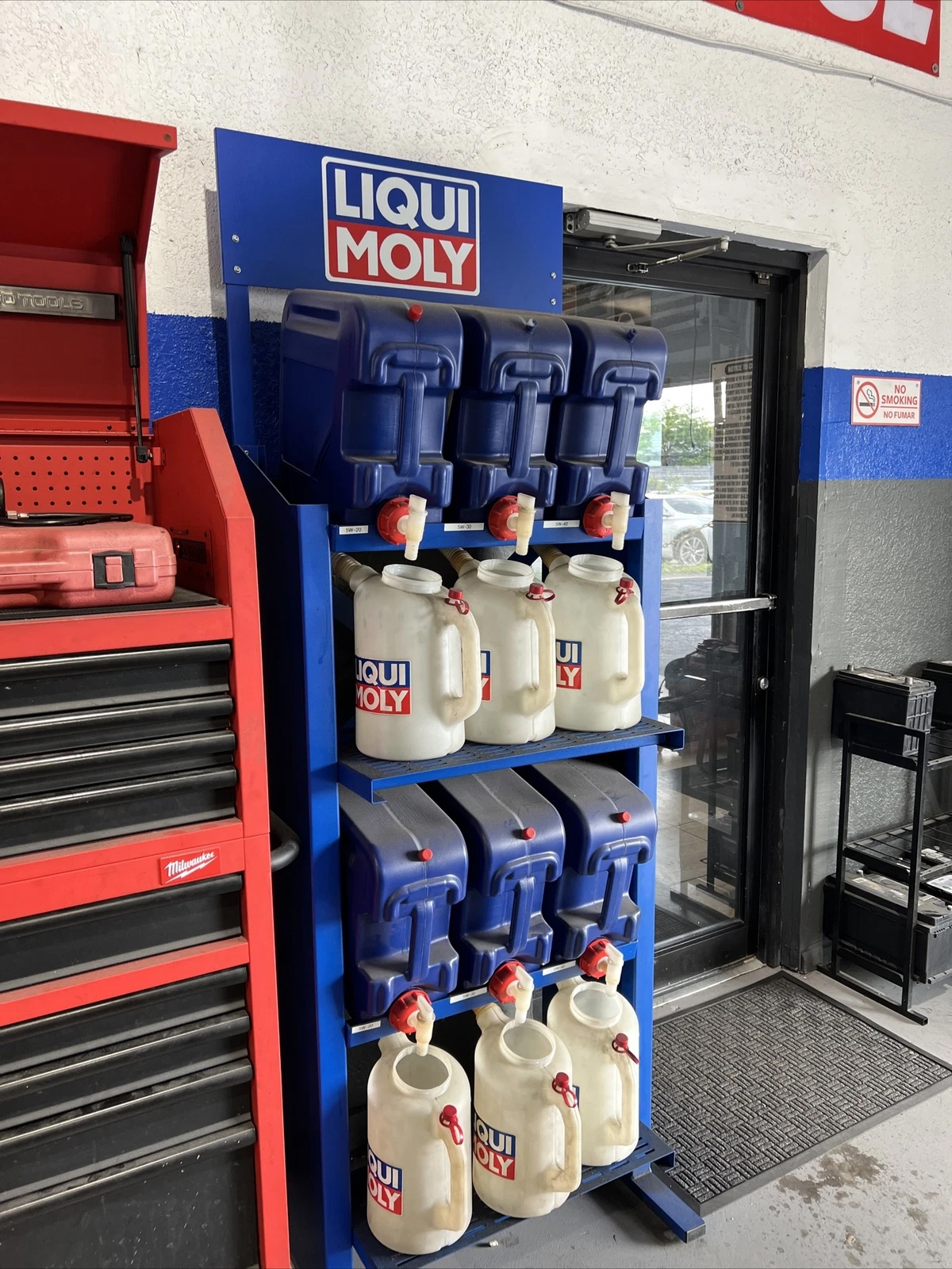 We have issues with our Liqui Moly 20L bottles always leaking. We received 2 racks from Liqui Moly that each hold 6 – 20L bottles. 12 total. Our local Liqui Moly rep said this has been a problem over the years. However he did offer some advice…